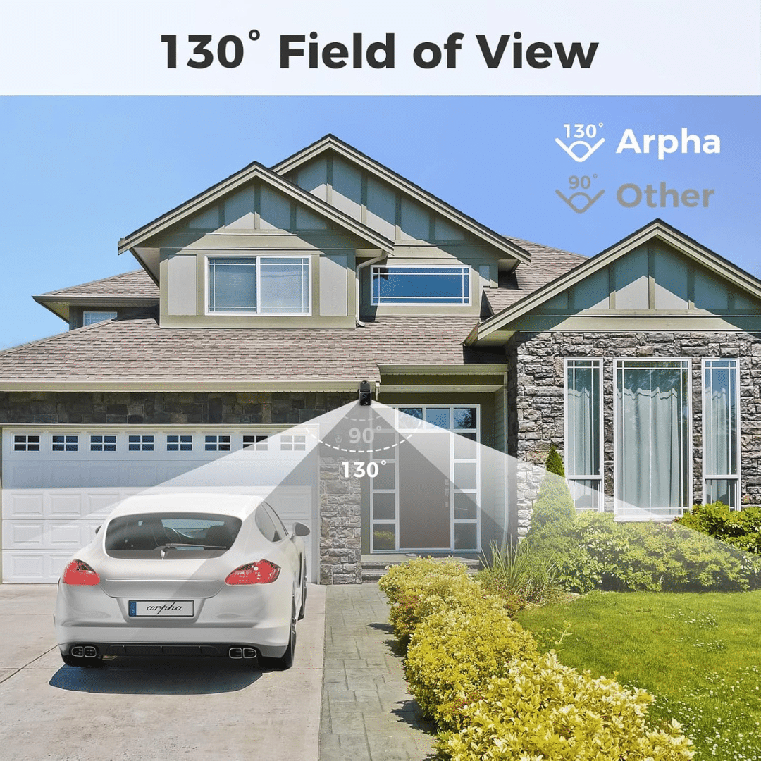 Cámara 1080P: La cámara de seguridad proporciona lente gran angular de 130° y calidad de imagen HD. Los usuarios pueden ver cada detalle a través de la aplicación.