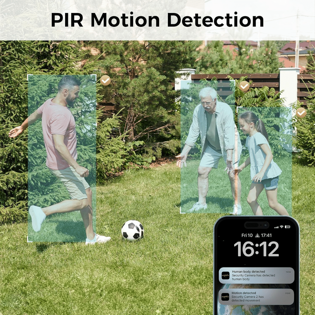 Detección de movimiento PIR: La cámara de seguridad puede detectar personas o animales en movimiento. Los mensajes de detección se enviarán a través de la aplicación.