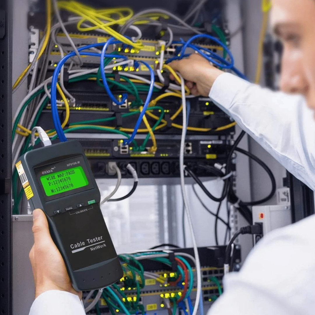BATERÍA DE LARGA DURACIÓN: Compatible con circuitos abiertos, cortocircuitos, cables puente, conexiones inversas o interferencias de diafonía. Calibra dinámicamente la longitud del cable y ofrece una precisión de medición del 97 %. Unidad portátil con batería de larga duración (más de 50 horas en modo de espera o en espera).
