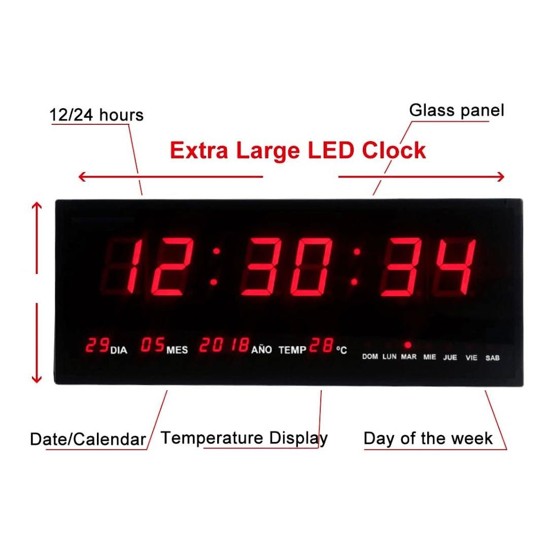 Un reloj de pared digital LED sirve para visualizar la hora, fecha, día de la semana y temperatura de manera clara a gran distancia, ideal para oficinas, aulas o salones, gracias a sus dígitos brillantes y gran tamaño. ¡No te pierdas esta oportunidad! ¡Compra ahora en Importadora Impormel!